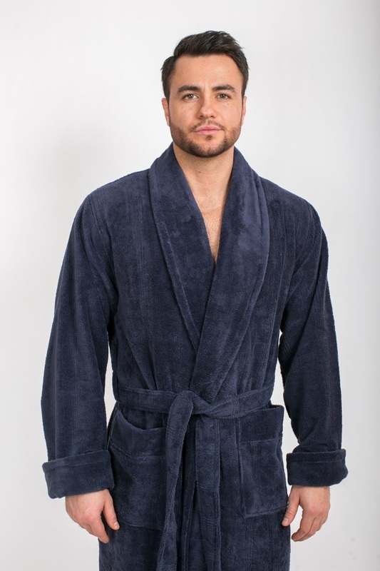Классический мужской халат из всеми любимой ткани Трига Бамбук. Фактурный рисунок ткани дополняет образ и привлекает своей элегантностью.