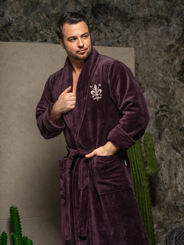 Мужской махровый халат (100% хлопок) "LOUIS", Баклажан