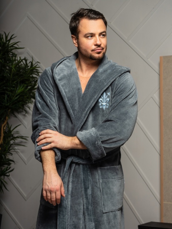 Мужской махровый халат с капюшоном (100% хлопок) "LOUIS", Серый
