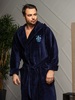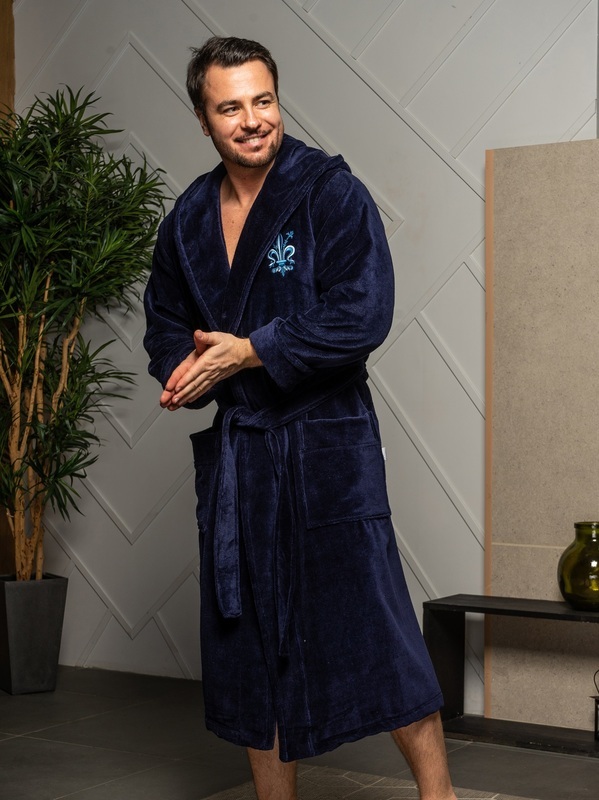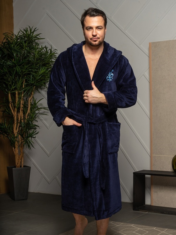 Мужской махровый халат с капюшоном (100% хлопок) "LOUIS", Синий