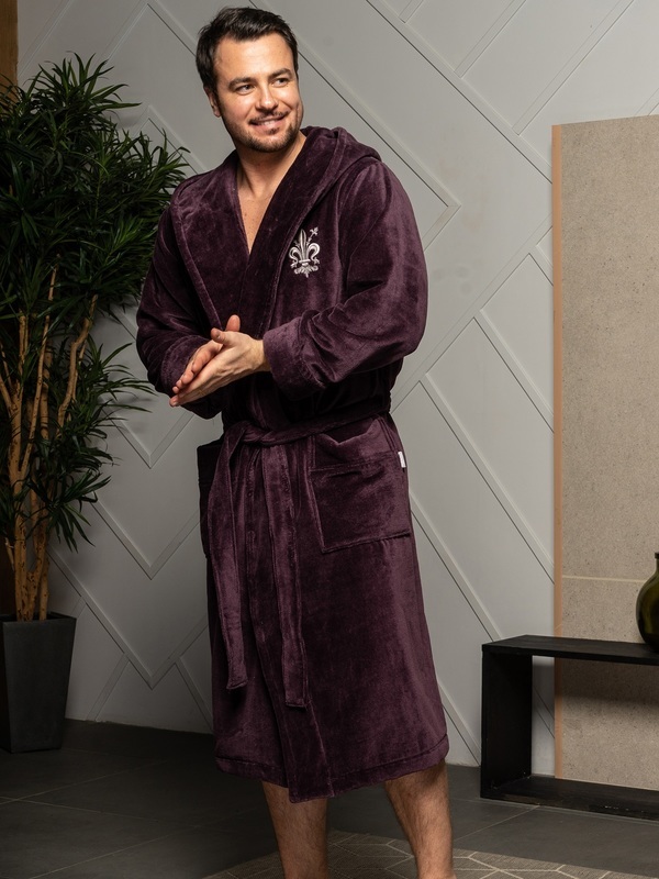 Мужской махровый халат с капюшоном (100% хлопок) "LOUIS", Баклажан