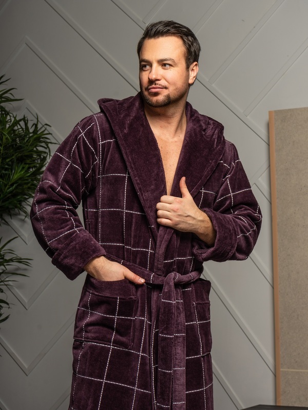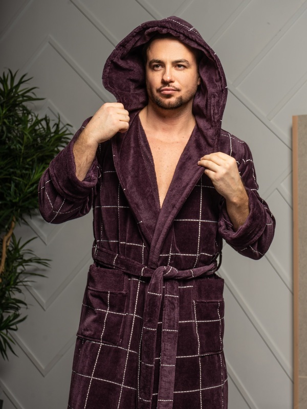 Элегантный и стильный махровый халат с капюшоном из плотной двухсторонней махровой ткани. Незабываемое ощущение мягкости, элегантный стиль и благородный глубокий цвет.
