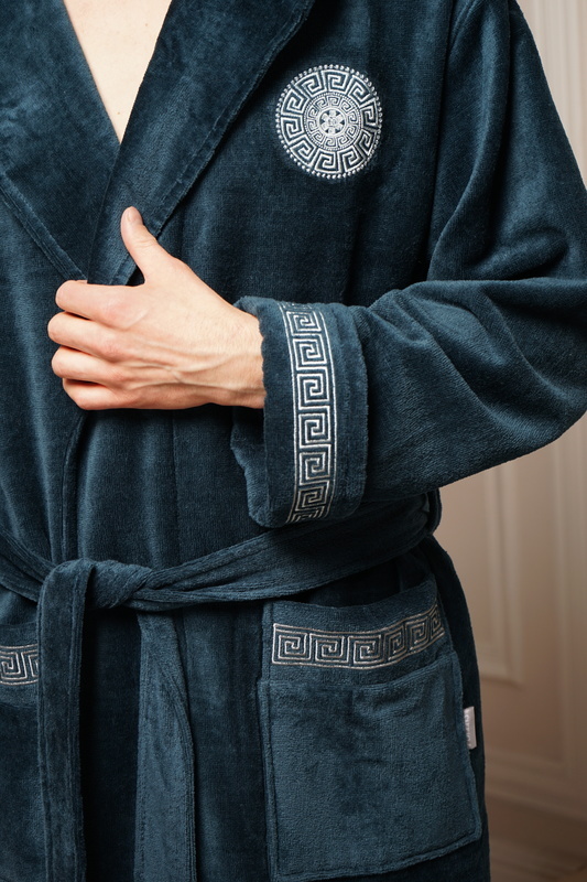 Халат мужской махровый с капюшоном "Gianni" морская волна