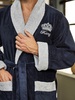 Мужской махровый халат KING, воротник шалька, хлопок 100%, на груди вышивка "Корона", Джинс