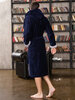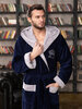 Мужской махровый халат KING, длинный с капюшоном, хлопок 100%, на груди вышивка "Корона", Синий