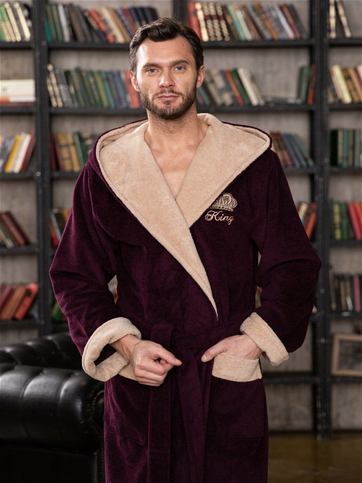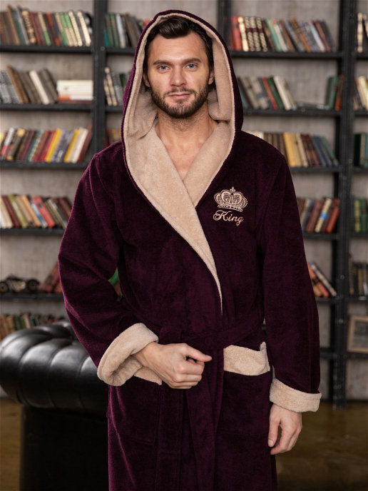Предлагаем Вашему вниманию современную классическую мужскую модель халата "KING" с капюшоном. Контрастная отделка по капюшону, Элегантный и стильный халат смотрется шикарно, поэтому ее по достоинству оценят все представителе сильного пола. Мы всегда используем в своих изделиях дорогие высококачественные материалы, поэтому данная модель выполнена из инновационной ткани TRIGA Хлопок: Внутренняя сторона ткани на основе хлопка, поэтому приятна тактильными ощущениями и натуральностью к телу. Лицевая сторона - велюр из микрофибры, придающий халату легкость и необычайную мягкость, что точно не оставит Вас равнодушным к данной моделе. Петельки в ткани надежно закреплены и не поддаются выдергиванию. Халат легко стирается, а также не требует глажки после стирки. Манжеты на рукавах отворачиваемые, регулируемые. Шлевки для пояса двухуровневые, для регулировки по росту. Карманы накладные, глубокие.