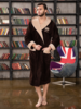 Мужской махровый халат KING, длинный с капюшоном, хлопок 100%, на груди вышивка "Корона", Коричневый