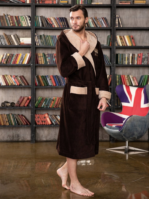 Предлагаем Вашему вниманию современную классическую мужскую модель халата "KING" с капюшоном. Контрастная отделка по капюшону, Элегантный и стильный халат смотрется шикарно, поэтому ее по достоинству оценят все представителе сильного пола. Мы всегда используем в своих изделиях дорогие высококачественные материалы, поэтому данная модель выполнена из инновационной ткани TRIGA Хлопок: Внутренняя сторона ткани на основе хлопка, поэтому приятна тактильными ощущениями и натуральностью к телу. Лицевая сторона - велюр из микрофибры, придающий халату легкость и необычайную мягкость, что точно не оставит Вас равнодушным к данной моделе. Петельки в ткани надежно закреплены и не поддаются выдергиванию. Халат легко стирается, а также не требует глажки после стирки. Манжеты на рукавах отворачиваемые, регулируемые. Шлевки для пояса двухуровневые, для регулировки по росту. Карманы накладные, глубокие.
