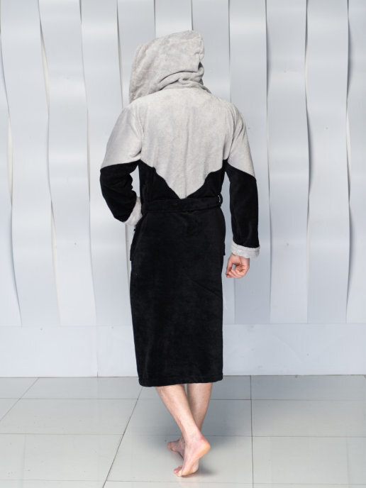 Халат мужской махровый с капюшоном "DIEGO", черный/серый