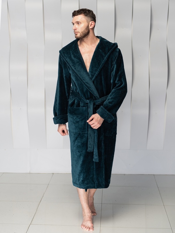 Халат мужской махровый с капюшоном "CODY" морская волна