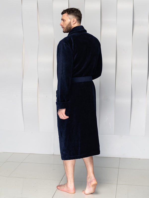 Халат мужской велюровый воротник шалька. Изготовлен из 100% хлопка, лицевая сторона велюр, изнаночная сторона махра Жаккард