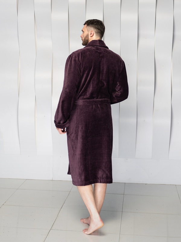 Халат мужской велюровый воротник шалька. Изготовлен из 100% хлопка, лицевая сторона велюр, изнаночная сторона махра Жаккард