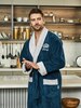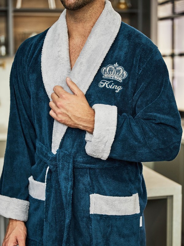 Мужской махровый халат KING, воротник шалька, хлопок 100%, на груди вышивка "Корона", Морская волна
