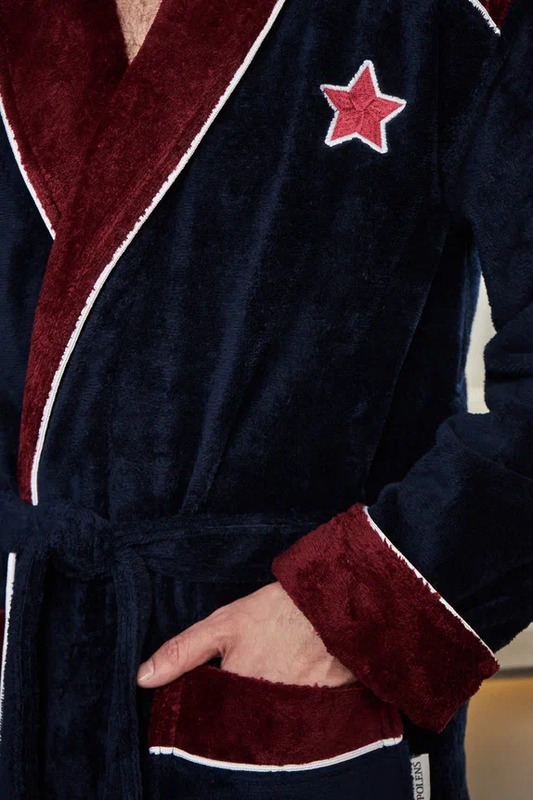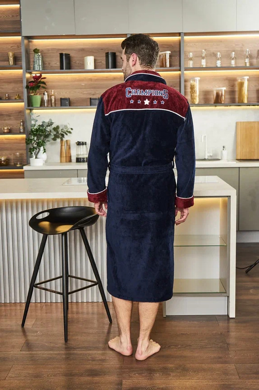Мужской махровый халат CHAMPIONS с вышивкой с шалевым воротником Синий/Бордовый