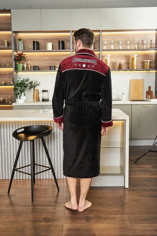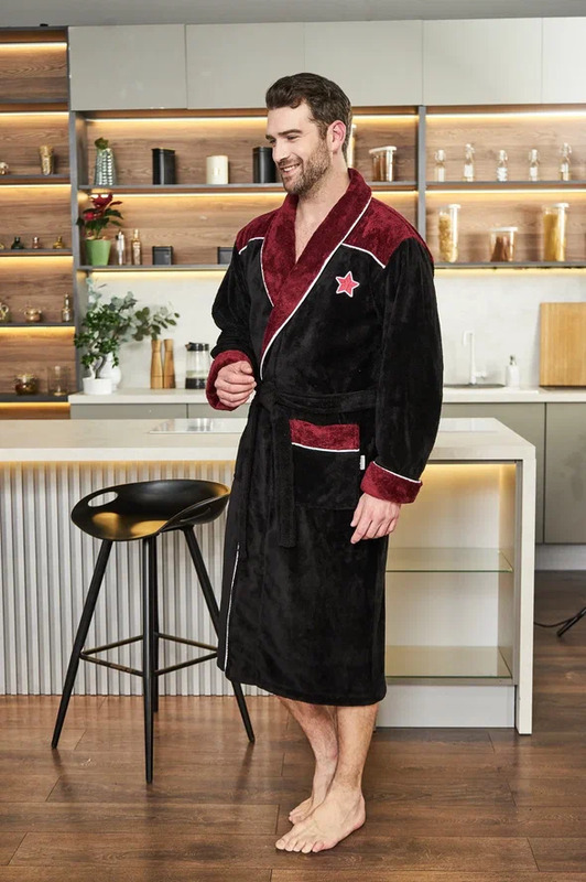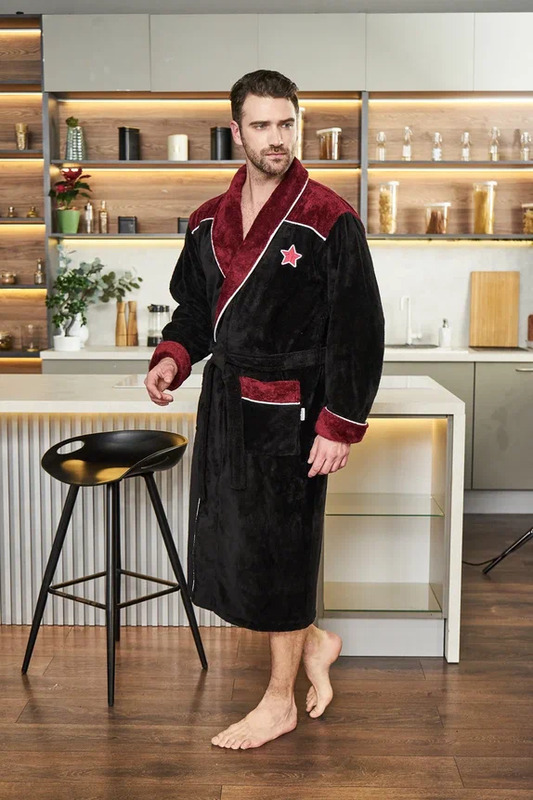 Мужской махровый халат CHAMPIONS с вышивкой с шалевым воротником Черный/Бордовый