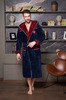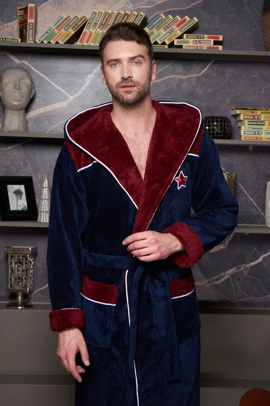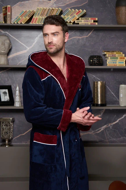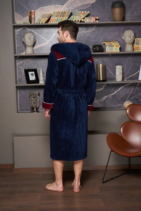 Данная модель изготовлена из нитей высшего качества. Фактурная ткань с красивым жаккардовым рисунком по воротнику, рукавам и карманам привнесет торжественности и оригинальности в привычную атмосферу домашнего уюта. Элегантный и стильный халат смотрется шикарно, поэтому его по достоинству оценят все представителе сильного пола. Мы всегда используем в своих изделиях дорогие высококачественные материалы, поэтому данная модель выполнена из инновационной ткани TRIGA Хлопок: Внутренняя сторона ткани на основе хлопка, поэтому приятна тактильными ощущениями и натуральностью к телу. Лицевая сторона - велюр из микрофибры, придающий халату легкость и необычайную мягкость, что точно не оставит Вас равнодушным к данной моделе. Петельки в ткани надежно закреплены и не поддаются выдергиванию. Халат легко стирается, а также не требует глажки после стирки. Манжеты на рукавах отворачиваемые, регулируемые. Шлевки для пояса двухуровневые, для регулировки по росту.