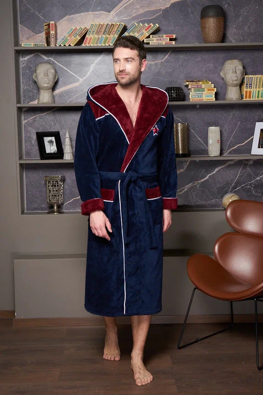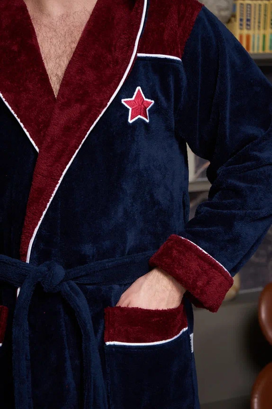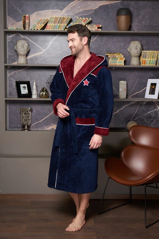 Мужской махровый халат CHAMPIONS с вышивкой, с капюшоном Синий/Бордовый