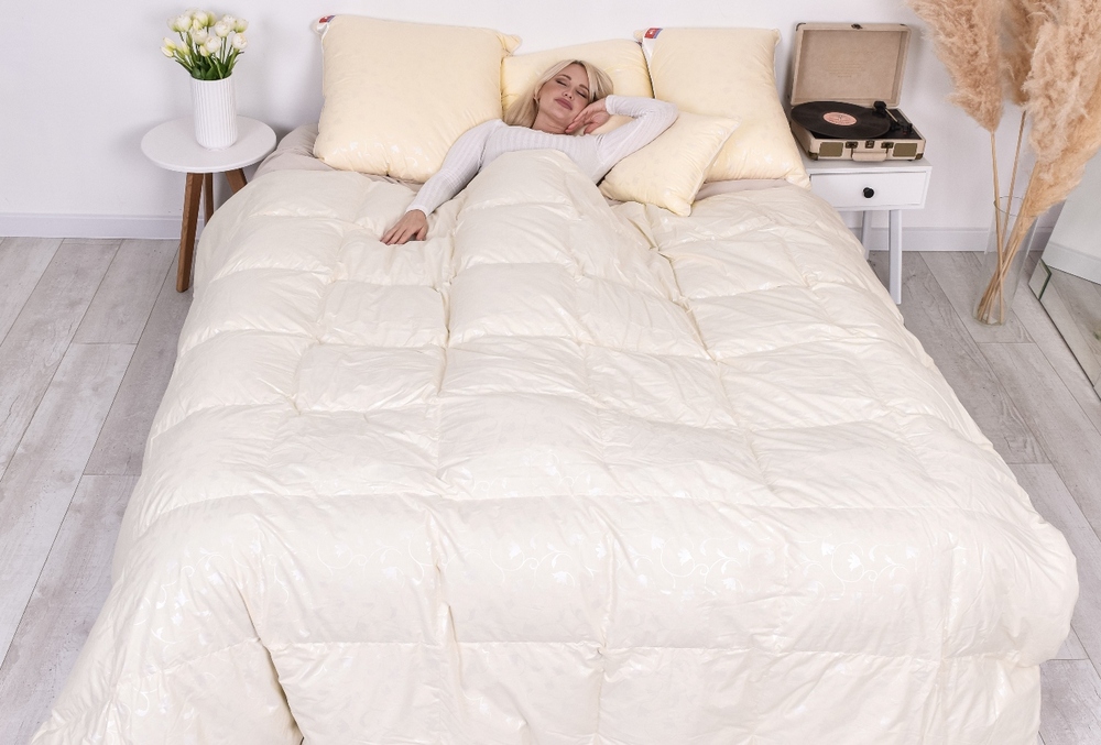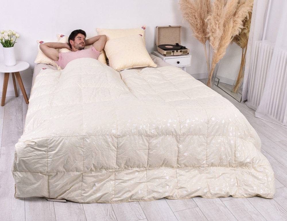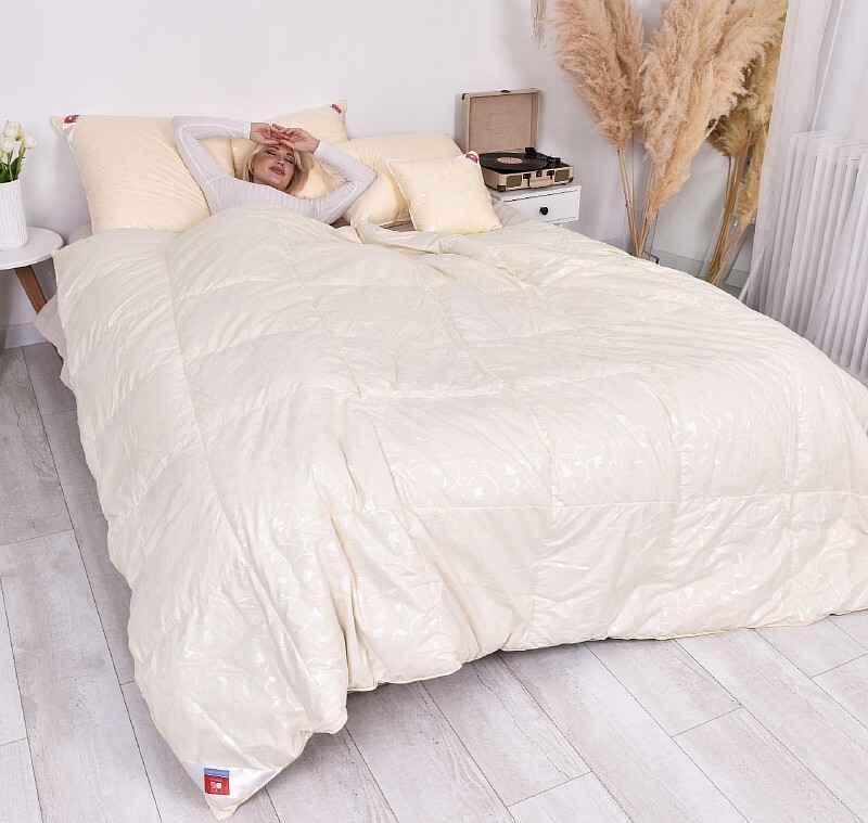 Замечательные свойства пуха и пера водоплавающих птиц хорошо подходят для изготовления одеял и подушек. Природное сырьё проходит специальную обработку – очищается, промывается и дезинфицируется, т.к. аллергию вызывают не сами перья, а вредные бактерии или микроорганизмы, которые живут в пыли. Изделия с пуховым наполнителем из комплекта Камелия рекомендуется регулярно стирать, сушить в солнечную погоду.