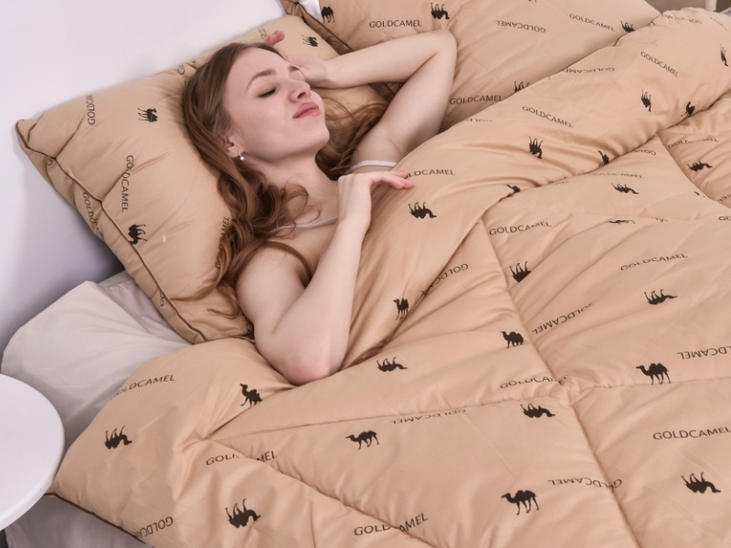 Верблюжья шерсть, благодаря особенностям структуры волокон, обладает высокой гигроскопичностью и дает сухое тепло, полезное людям с заболеваниями опорно-двигательного аппарата. Содержащийся в ней ланолин обладает антибактериальными и антистатическими свойствами. Поэтому одеяла из верблюжьей шерсти не накапливают пыли и не вызывают аллергии. Они очень теплые и практичные.
