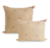 Качественный чехол из плотного хлопкового тика бежевого цвета приятен к телу и надежно удерживает наполнитель из верблюжьей шерсти внутри подушки, отделка по краю подушки атласным кантом коричневого цвета, фирменная упаковка конверт ПВД, спанбонд.