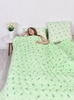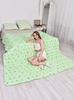 Особенностью одеяла является стеганый чехол, что не позволяет наполнителю скатываться в комки. В качестве наполнителя используется искусственный «лебяжий пух» и бамбуковое волокно, одеяло выполнено из ткани поплин (100% хлопок) салатового цвета с бамбуковым рисунком, фирменная упаковка конверт ПВД, спанбонд.