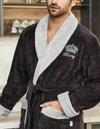 Предлагаем Вашему вниманию современную классическую мужскую модель халата "KING" с шалевым воротником. Элегантный и стильный халат смотрется шикарно, поэтому ее по достоинству оценят все представителе сильного пола. Мы всегда используем в своих изделиях дорогие высококачественные материалы, поэтому данная модель выполнена из инновационной ткани TRIGA Хлопок: Внутренняя сторона ткани на основе хлопка, поэтому приятна тактильными ощущениями и натуральностью к телу. Лицевая сторона - велюр из микрофибры, придающий халату легкость и необычайную мягкость, что точно не оставит Вас равнодушным к данной моделе. Петельки в ткани надежно закреплены и не поддаются выдергиванию. Халат легко стирается, а также не требует глажки после стирки. Манжеты на рукавах отворачиваемые, регулируемые.