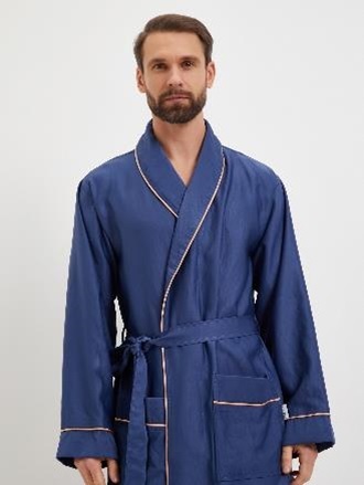 Халат мужской домашний ТНОМАS, сатиновый, с золотым кантом, джинс