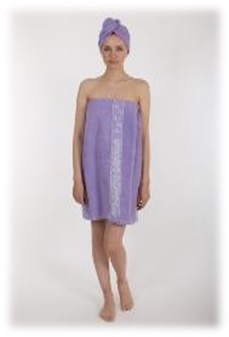 Комплект для сауны женский парео и чалма хлопок сиреневый