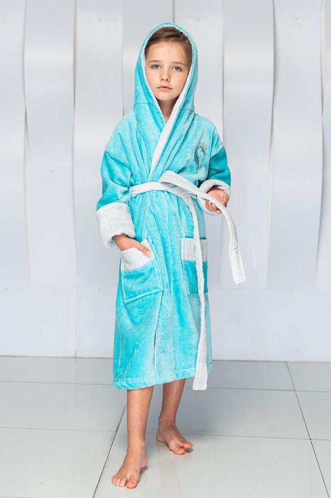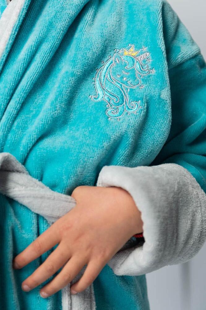 Халат детский Unicorn с вышивкой с капюшоном "Polens" Бирюзовый
