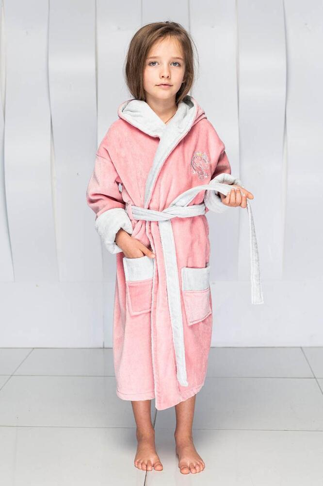 Халат детский Unicorn с вышивкой с капюшоном "Polens" Сухая роза