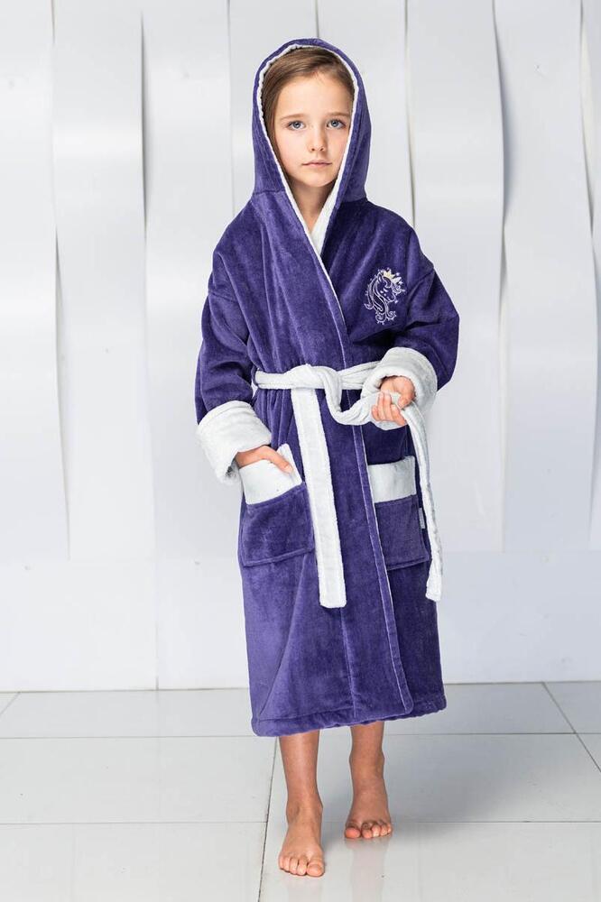 Халат детский Unicorn с вышивкой с капюшоном "Polens" Темная сирень