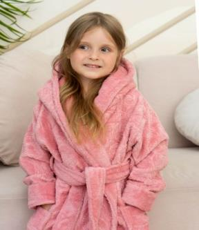 Халат детский велюровый жаккард "Polens" с капюшоном EMILY Сухая роза