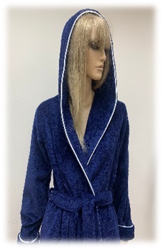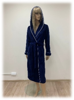 Халат женский домашний махровый HELEN длинный c капюшоном, синий