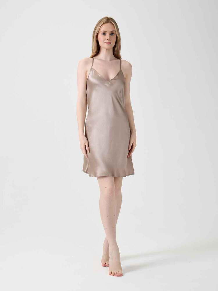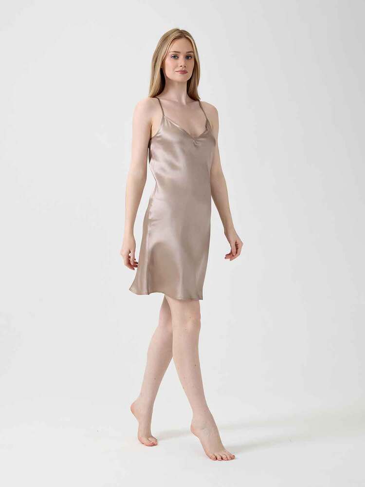 Ночная сорочка шелковая "Jacliene mini" темно-бежевый