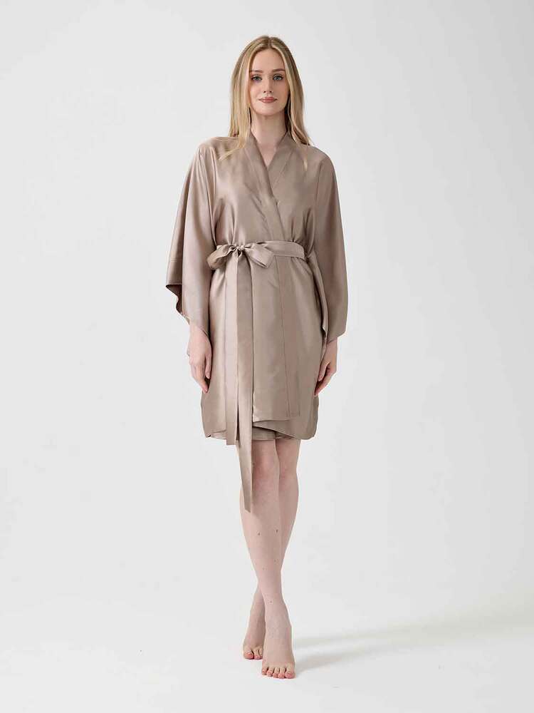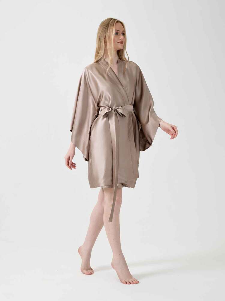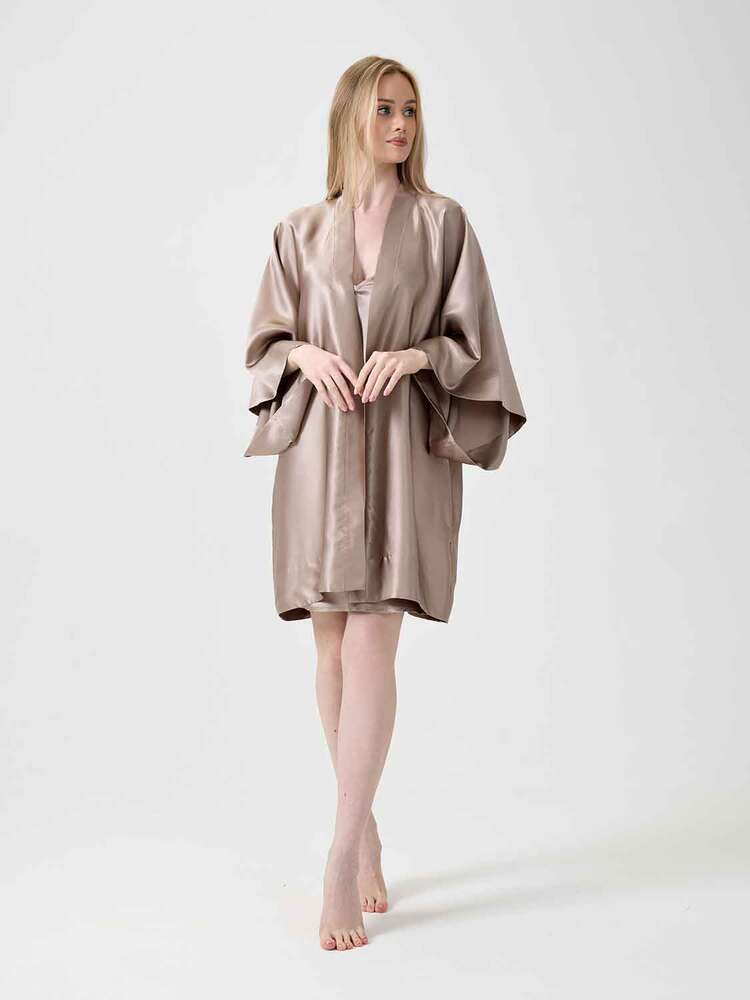 Халат кимоно "Assami mini" 100% шелк темно-бежевый