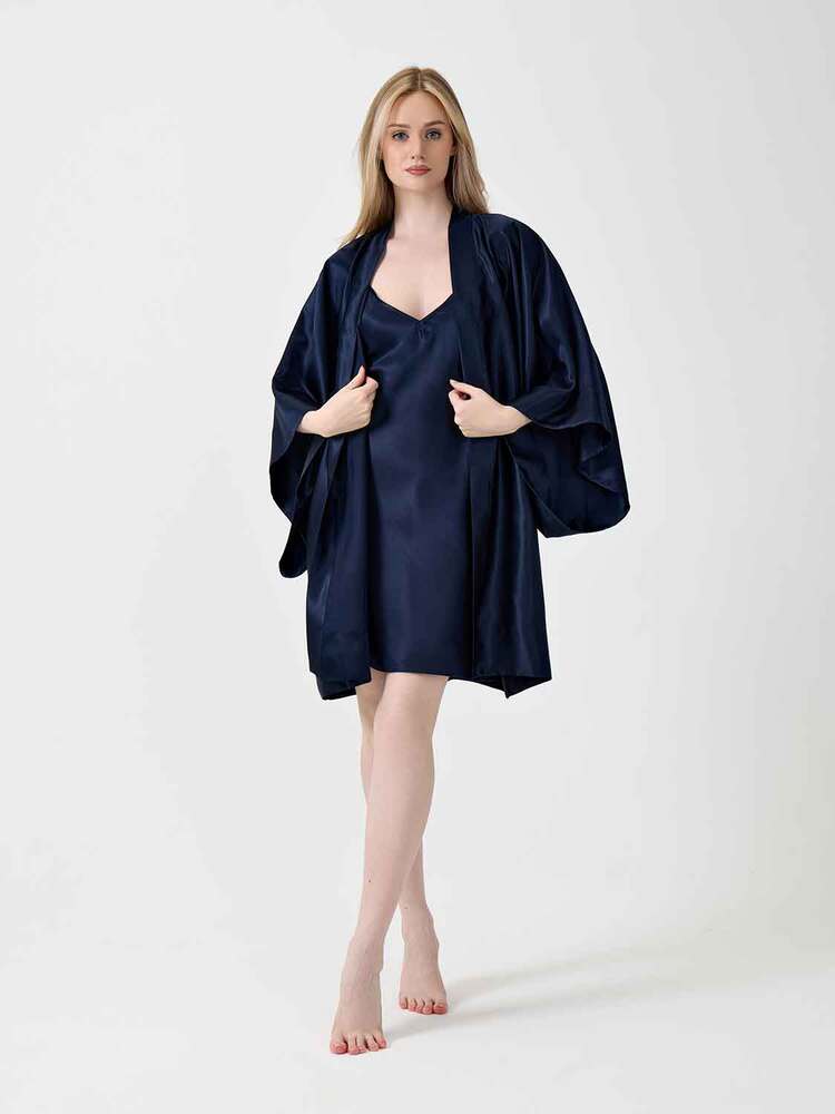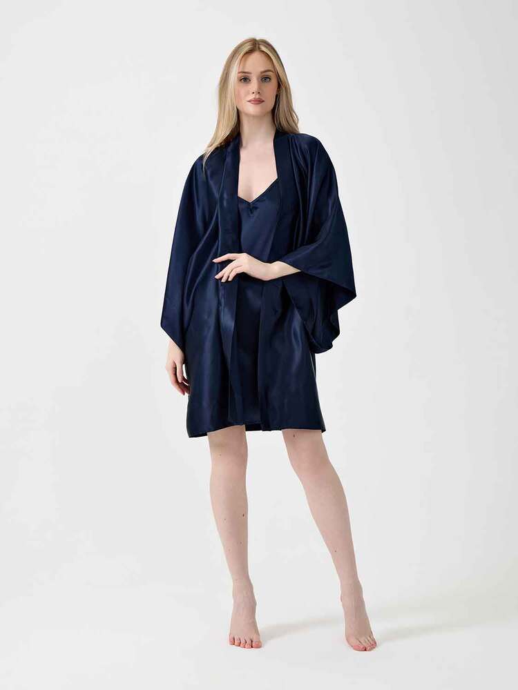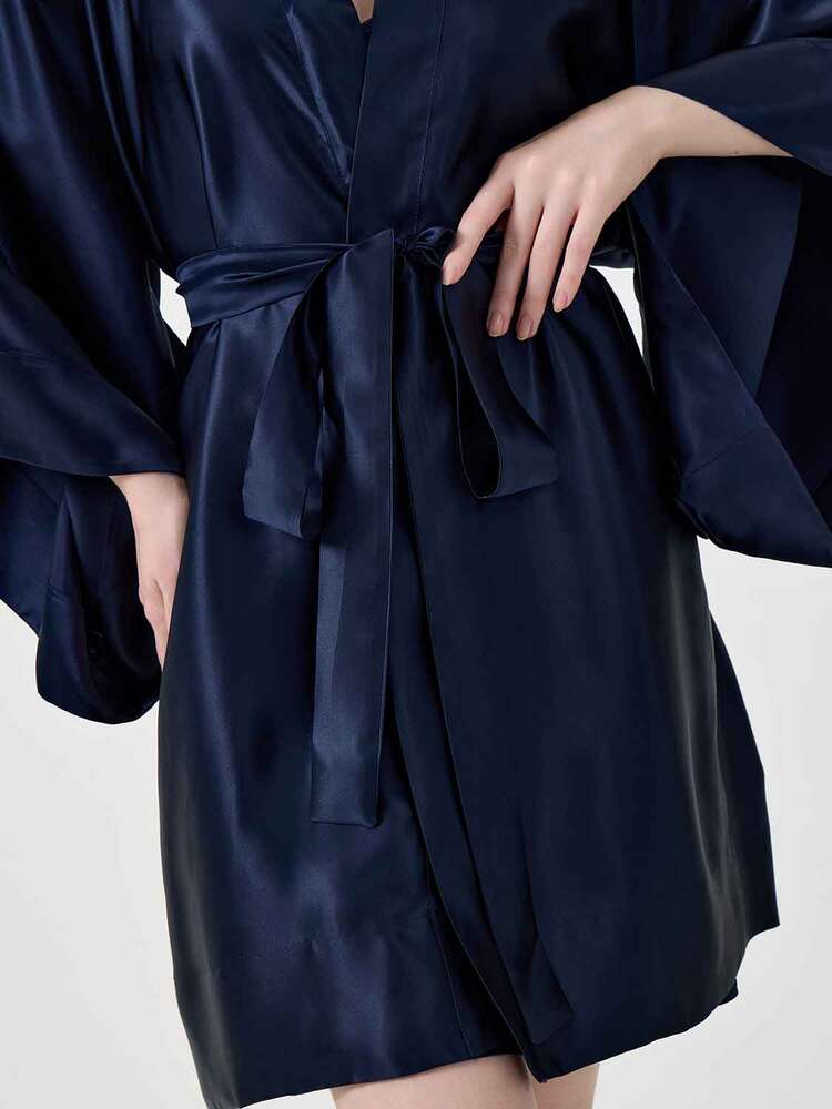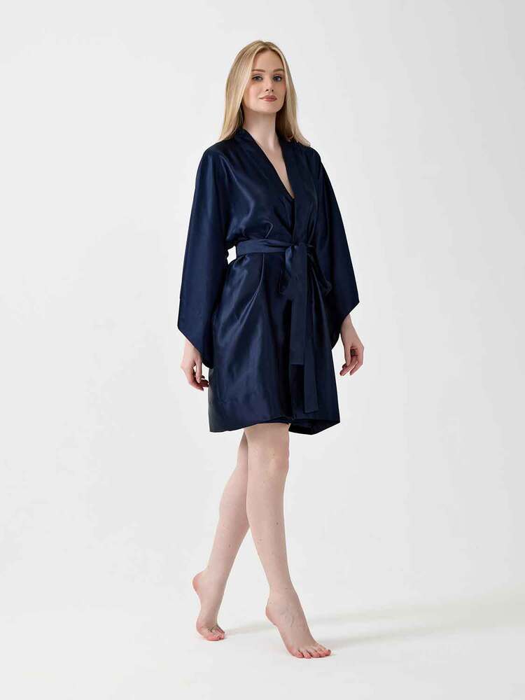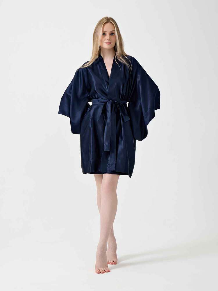 Халат кимоно "Assami mini" 100% шелк темно-синий