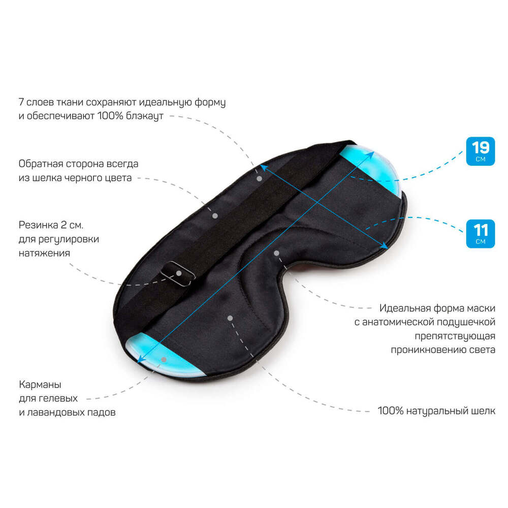 - Три слоя шелка + 4 слоя хлопка для полной блокировки света.